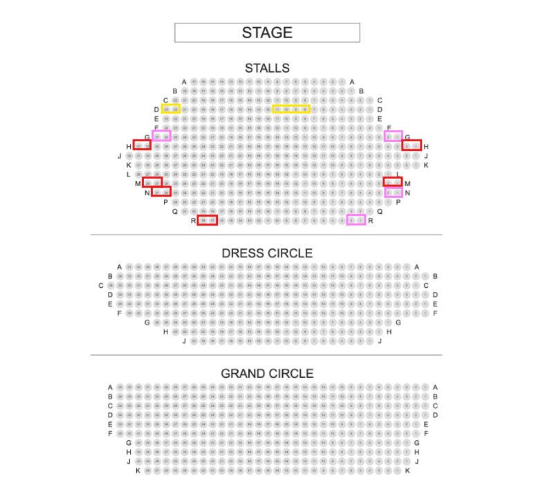 For customers who are partially sighted, there are specific seats set aside in the Stalls which are recommended by the venue as shown below: