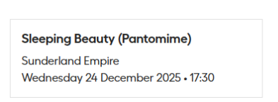 At the top you’ll see the event date and time. If the event you have selected is showing multiple times at the same venue, you will see purple navigation arrows. You can click the left and right arrows to navigate through alternative dates and times.